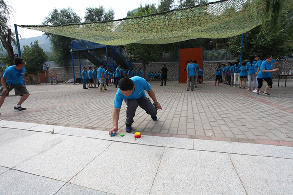 經(jīng)過報數(shù)分組,先進行室內(nèi)項目------融冰環(huán)節(jié),目的是打開大家的心扉,消除隔閡。