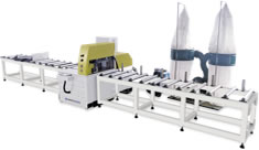 數(shù)控四頭組角生產線:全套施耐德數(shù)控系統(tǒng);國內首創(chuàng)的高效四頭組角生產線設備,可實現(xiàn)窗體的自動輸入、定位、組角和自動輸出;創(chuàng)新的機頭結構設計,確保組角精度。