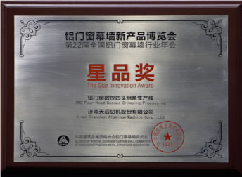 展會期間,在第二屆中國門窗幕墻年度星品評選中,天辰股份的數(shù)控四頭組角生產線以其填補國內空白的先進的技術及超高生產效率,獲得評審及專家的一致好評,勇奪“星品獎”。天辰股份市場部傅旺經理在星品發(fā)布會上對該設備進行了詳盡的技術闡述。