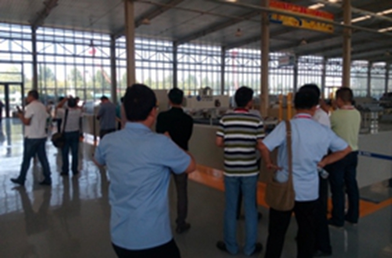 骨干企業(yè)代表、專(zhuān)家參觀鋸切中心及組角流水線操作演示