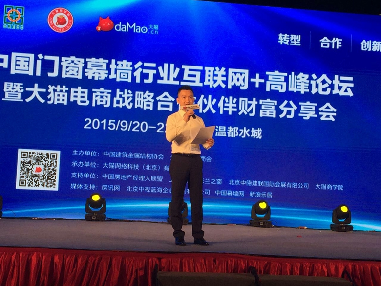隨著全球趨勢(shì)的發(fā)展和政府的大力倡導(dǎo),互聯(lián)網(wǎng)+正如火如荼地席卷所有行業(yè)。如今電子信息化時(shí)代,互聯(lián)網(wǎng)+的發(fā)展已經(jīng)有目共睹。2015年9月20日-22日在北京溫都水城,大貓電商與中國(guó)建筑金屬結(jié)構(gòu)協(xié)會(huì)、全聯(lián)房地產(chǎn)商會(huì)共同舉辦了“2015中國(guó)門(mén)窗幕墻行業(yè)互聯(lián)網(wǎng)+時(shí)代高峰論壇暨大貓電商戰(zhàn)略合作伙伴財(cái)富分享會(huì)”。天辰股份作為合作會(huì)員單位,應(yīng)邀參加了此次論壇會(huì)。